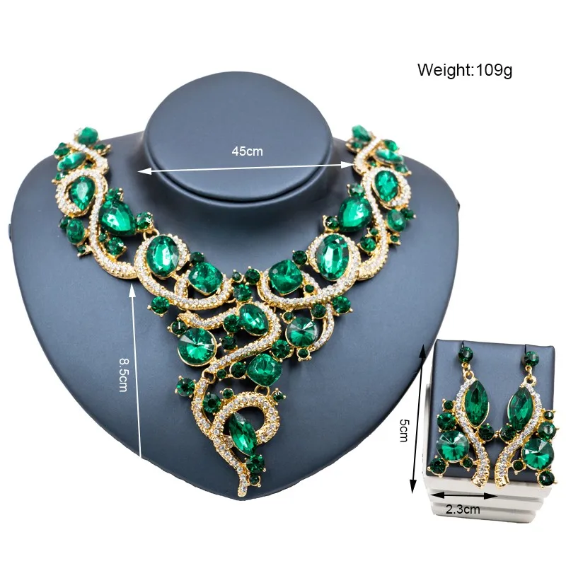 Austrian crystal bib necklace with earrings sets