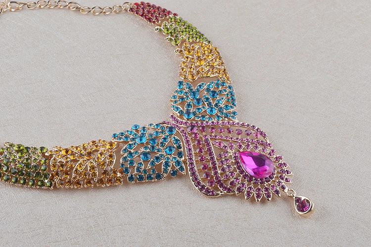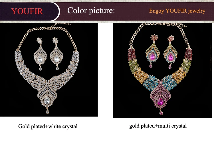 Statement India style Necklace earrings sets Bridal wedding Party Necklace Water Drop Type Golden Plated Crystal Jewelry Sets